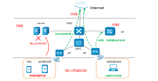 迎客無限無線系統(tǒng),可以準(zhǔn)確識別接入終端類型,并進(jìn)行賬號與MAC的自動綁定,支持用戶分組,充分保障安全接入,同時內(nèi)網(wǎng)廣播優(yōu)化,辦公網(wǎng)和訪客網(wǎng)隔離,隔離內(nèi)部不良網(wǎng)絡(luò)攻擊,保障政府內(nèi)網(wǎng)信息安全。
