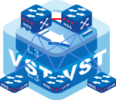 接入設(shè)備采用了縱向虛擬化(M-VST:MiX- Virtual Switching Technologies)技術(shù),將各接入交換機(jī)管理智能上收,接入交換機(jī)管理上作為核心交換機(jī)的一個(gè)獨(dú)立遠(yuǎn)端擴(kuò)展板卡角色出現(xiàn),真正意義上實(shí)現(xiàn)數(shù)據(jù)中心的“一網(wǎng)一機(jī)”組網(wǎng)。