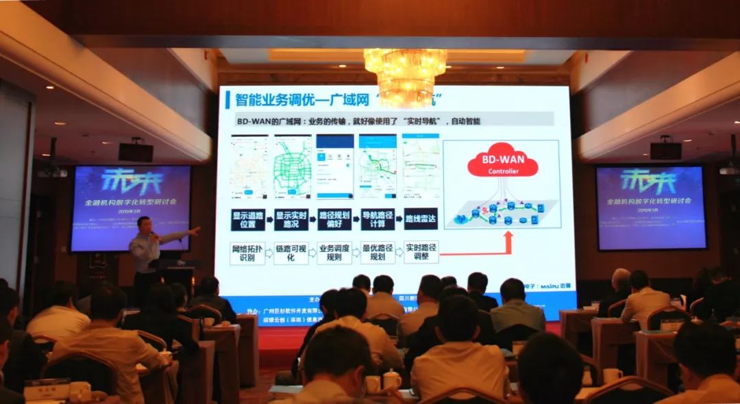 針對這些問題,賈文宇先生介紹了邁普基于業(yè)務(wù)驅(qū)動、借助SDN、Overlay、NFV等新技術(shù)應(yīng)用的BD-WAN廣域網(wǎng)解決方案。該方案以智能化、自動化、可視化為特點,高性能、高安全為原則,滿足當(dāng)下金融機構(gòu)廣域網(wǎng)縱向網(wǎng)、分支機構(gòu)等場景對新型廣域網(wǎng)的部署需求,提高整網(wǎng)運行質(zhì)量,有效降低設(shè)備和人力資源投入,并提高行業(yè)競爭力。邁普用實力協(xié)助金融機構(gòu)度過轉(zhuǎn)型期,在現(xiàn)場受到了大家的一致好評。
