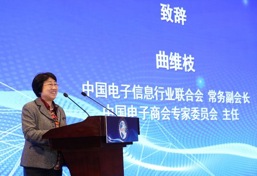 中國電子信息行業(yè)聯(lián)合會常務(wù)副會長、中國電子商會專家委員會主任曲維枝致辭